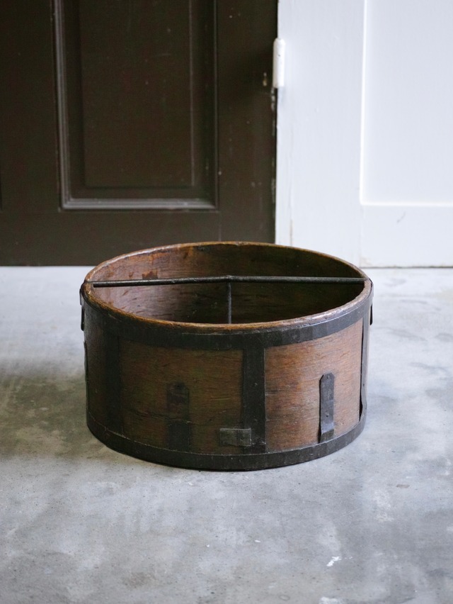 チェコで用いられた農具のひとつで、小麦などの穀物を計量するための道具と考えられます。 Czech Φ425 H215mm