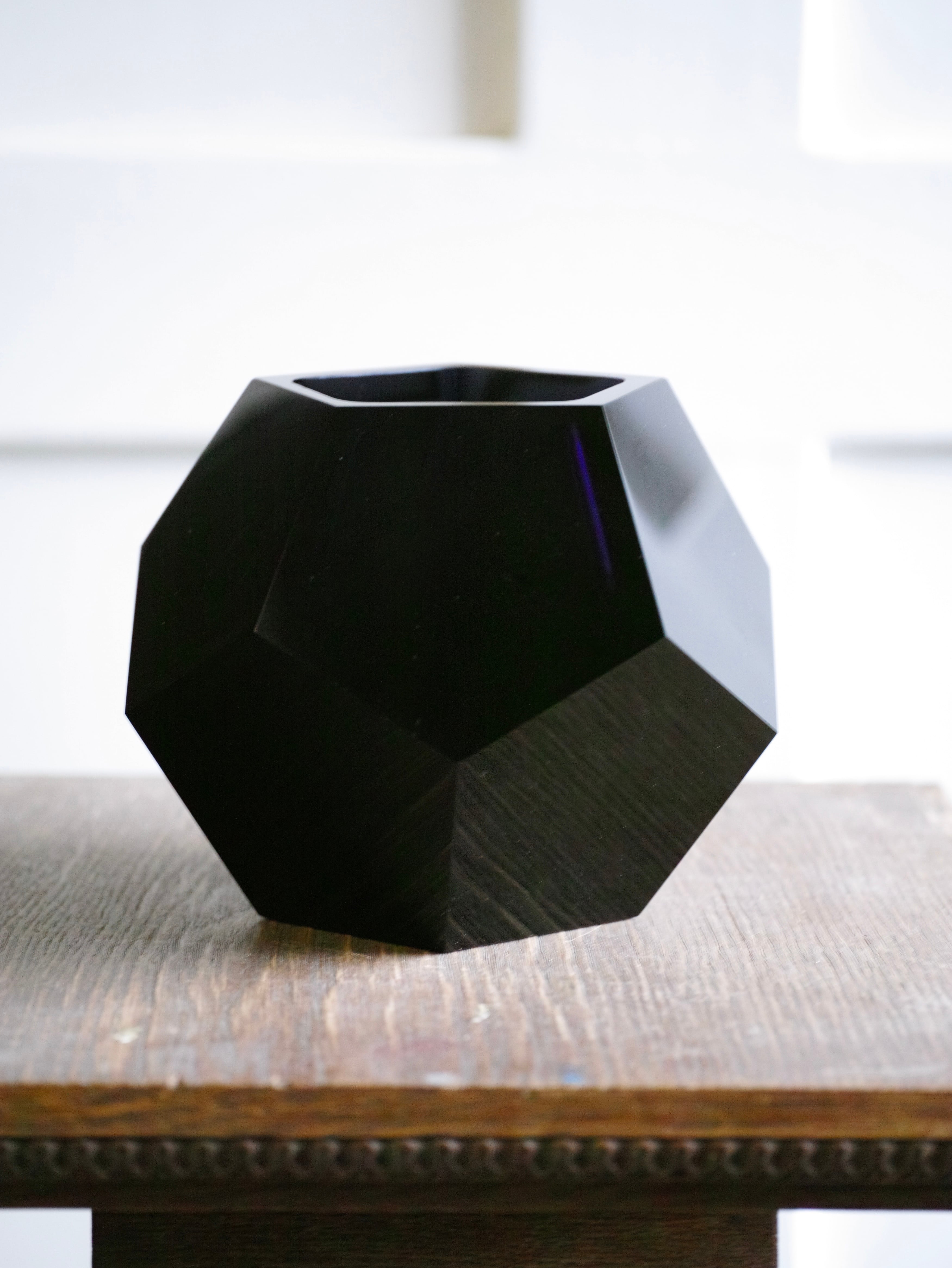 MOSERによる黒ガラスの逸品です。圧倒的な存在感は、チェコで興ったチェコ・キュビズムの精神をどこか思わせます。