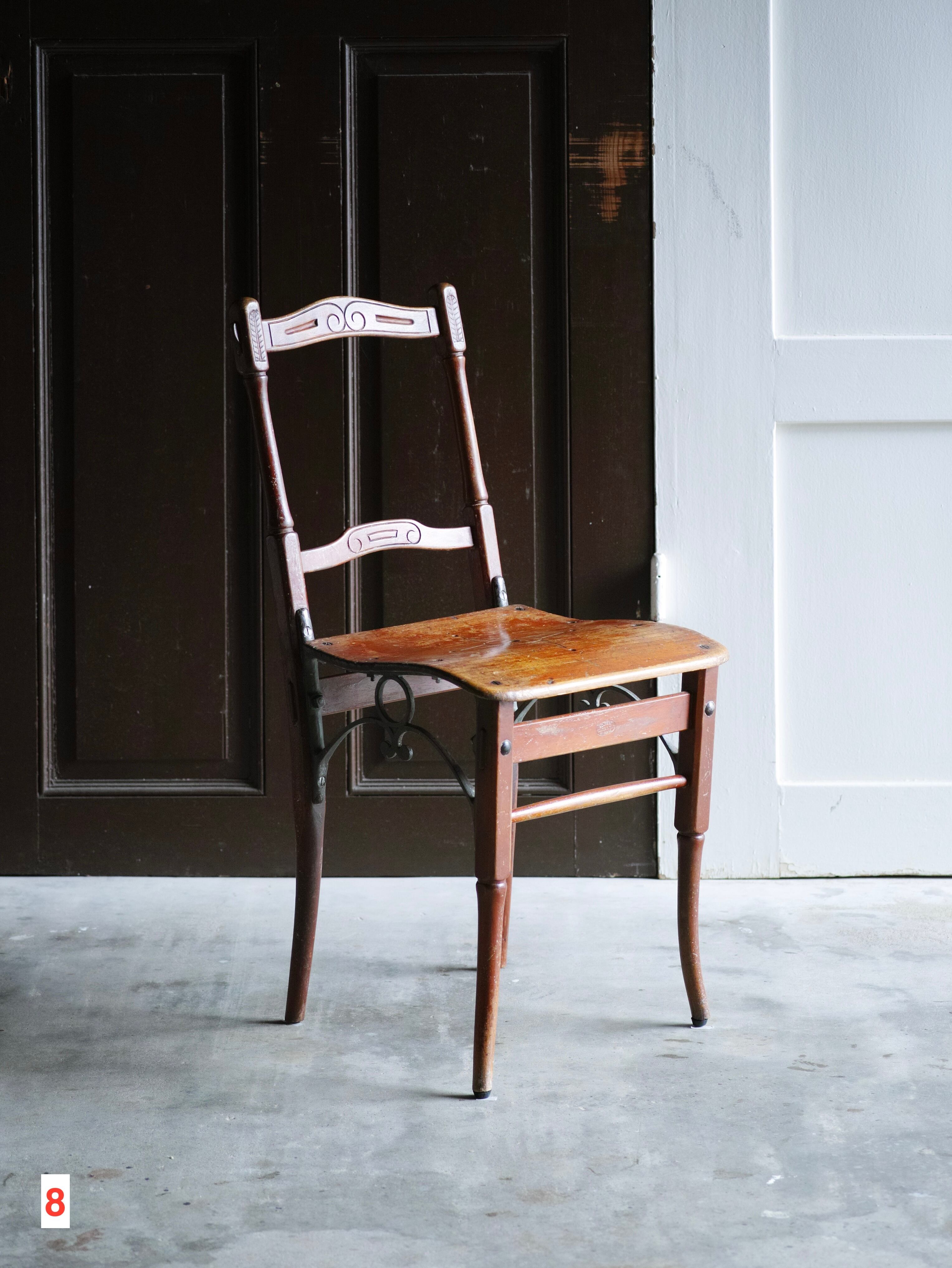 チェコにおいて、最も無名でありながら美しい椅子の一つだと思います。華奢なフレームをアイアンで補強することで、唯一無二の美しさを生み出しています。