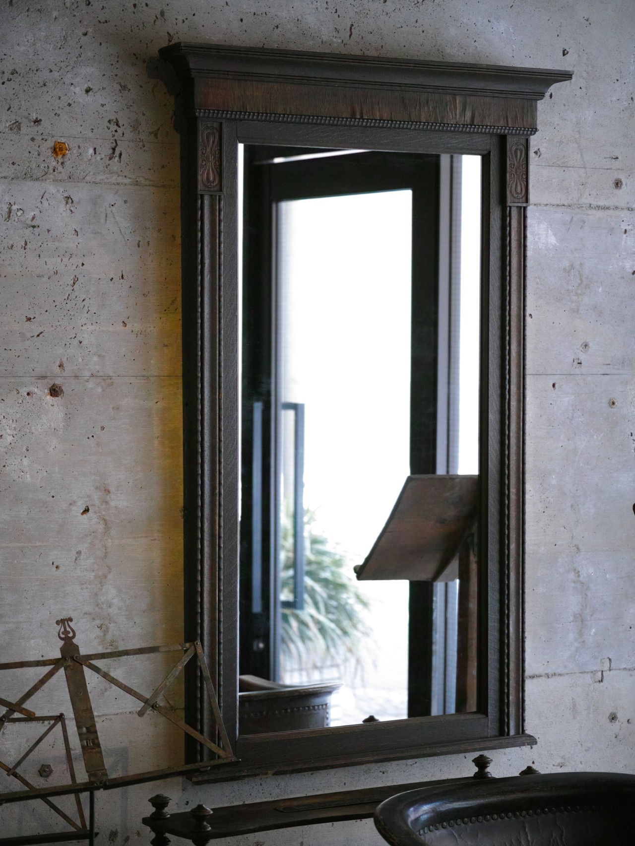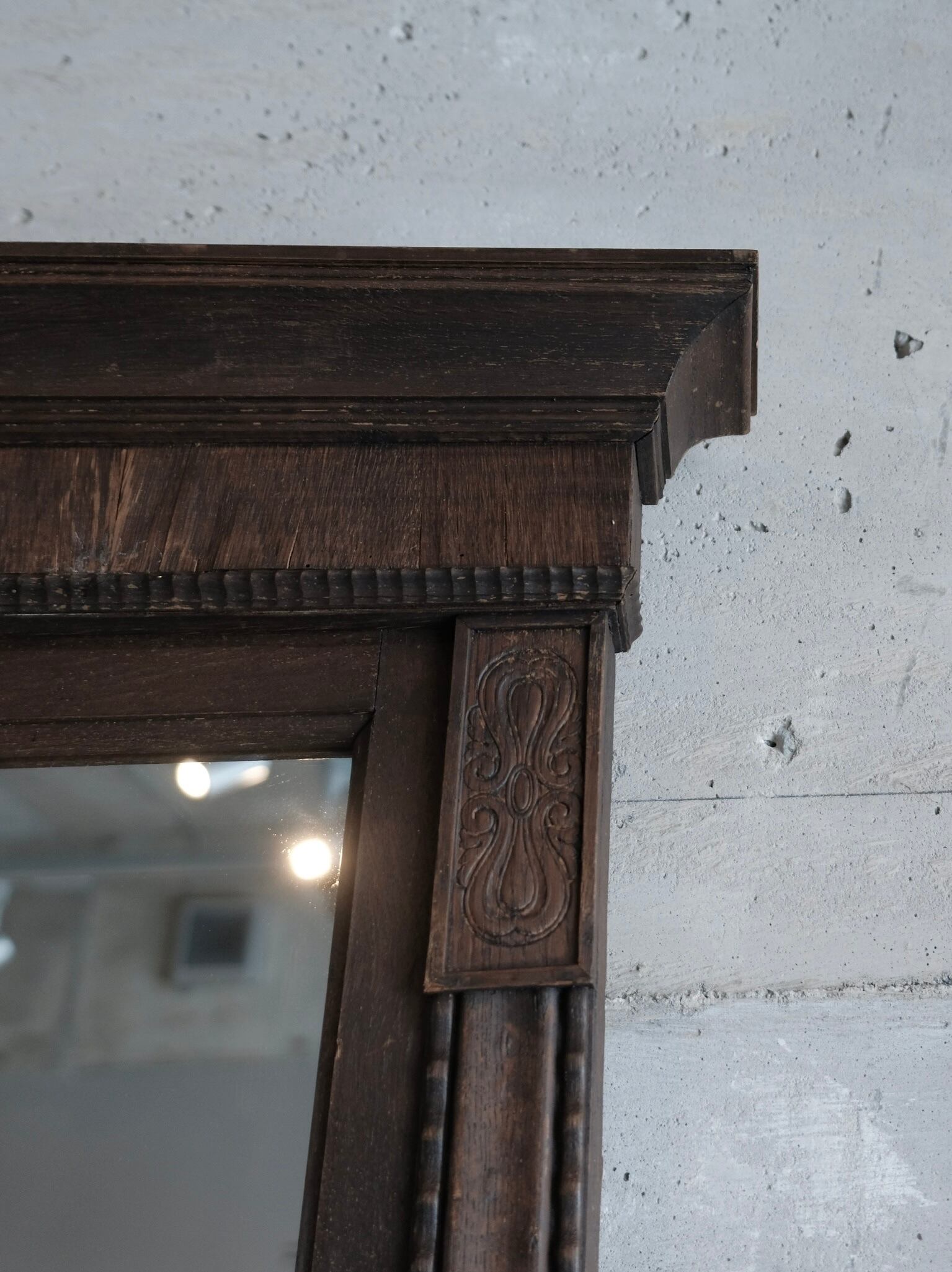 家具としてもしっかりと存在感のある、ドイツの古い姿見です。鏡面は交換済みです。